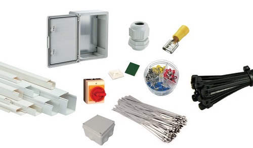 Elektro-Installations-Zubehör mit Schutzklasse IP55 und IP65. Schalt- und Verteilerschränke aus schlagfestem ABS, Not-Aus-Schalter, Kabelbinder in natur und schwarz (UV-geschützt). Als weitere Abrundung sind Kabelendhülsen mit farbiger, nach DIN versehender Isolierung, für alle gängigen Kabeldurchmesser erhältlich. Not-Aus- oder Hauptschalter bis 80 Ampere und Kabelkanäle in unterschiedlichen Größen und Verteilerdosen für unterschiedliche Schutzklassen.